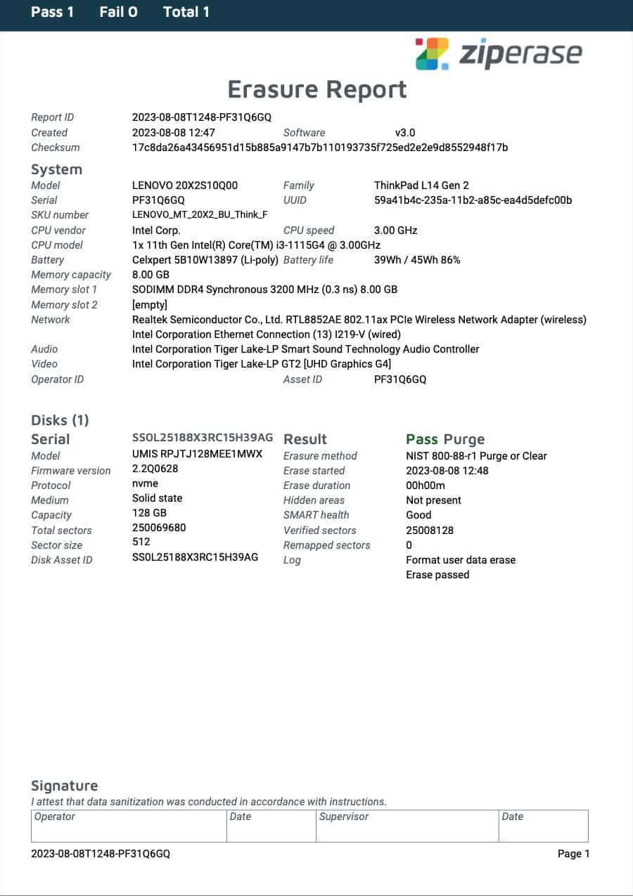 Ziperase handles a wide range of RAID controllers from a selection of manufacturers. Where possible, Ziperase will automatically provide RAID dismantling wich will break down the RAID array into individual drives for erasure.